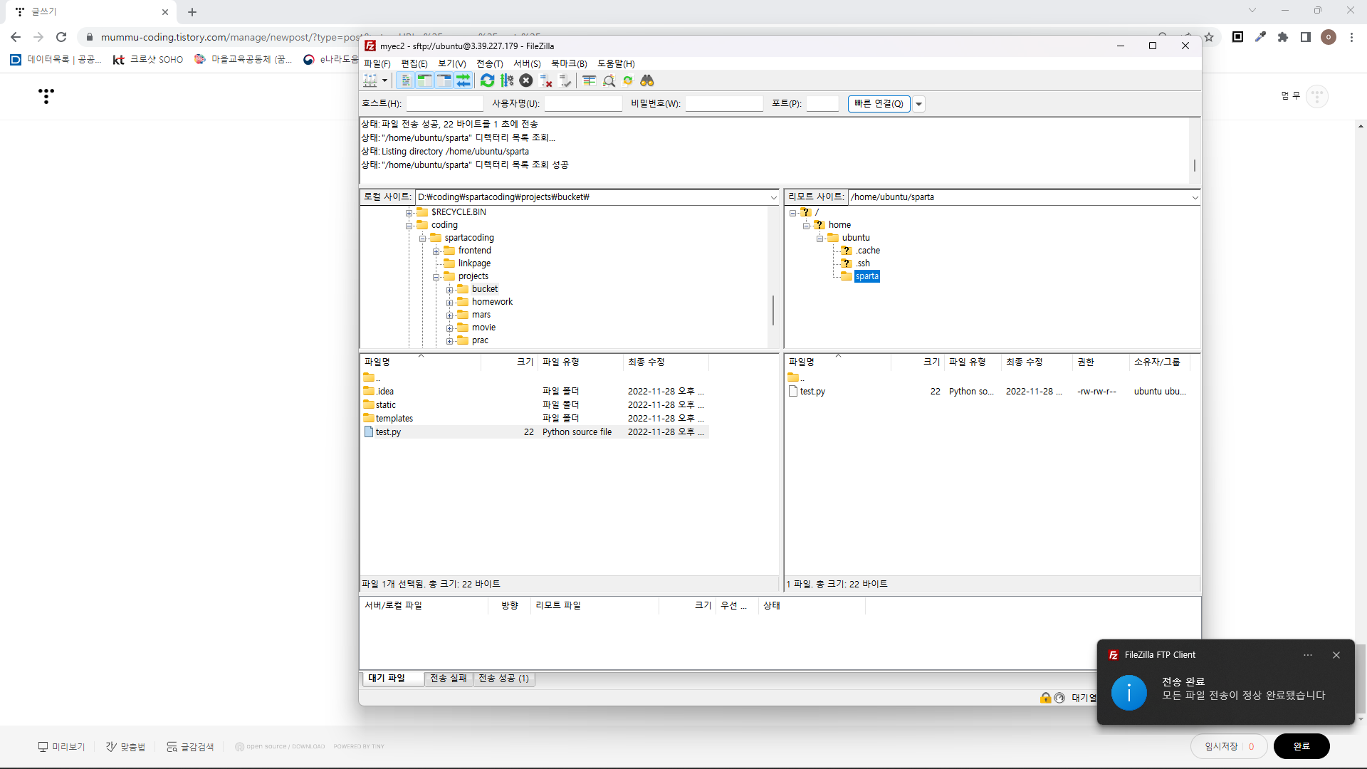 내 컴터에 있는 파일을 서버에 있는 컴터로 옮겨주는 프로그램이다