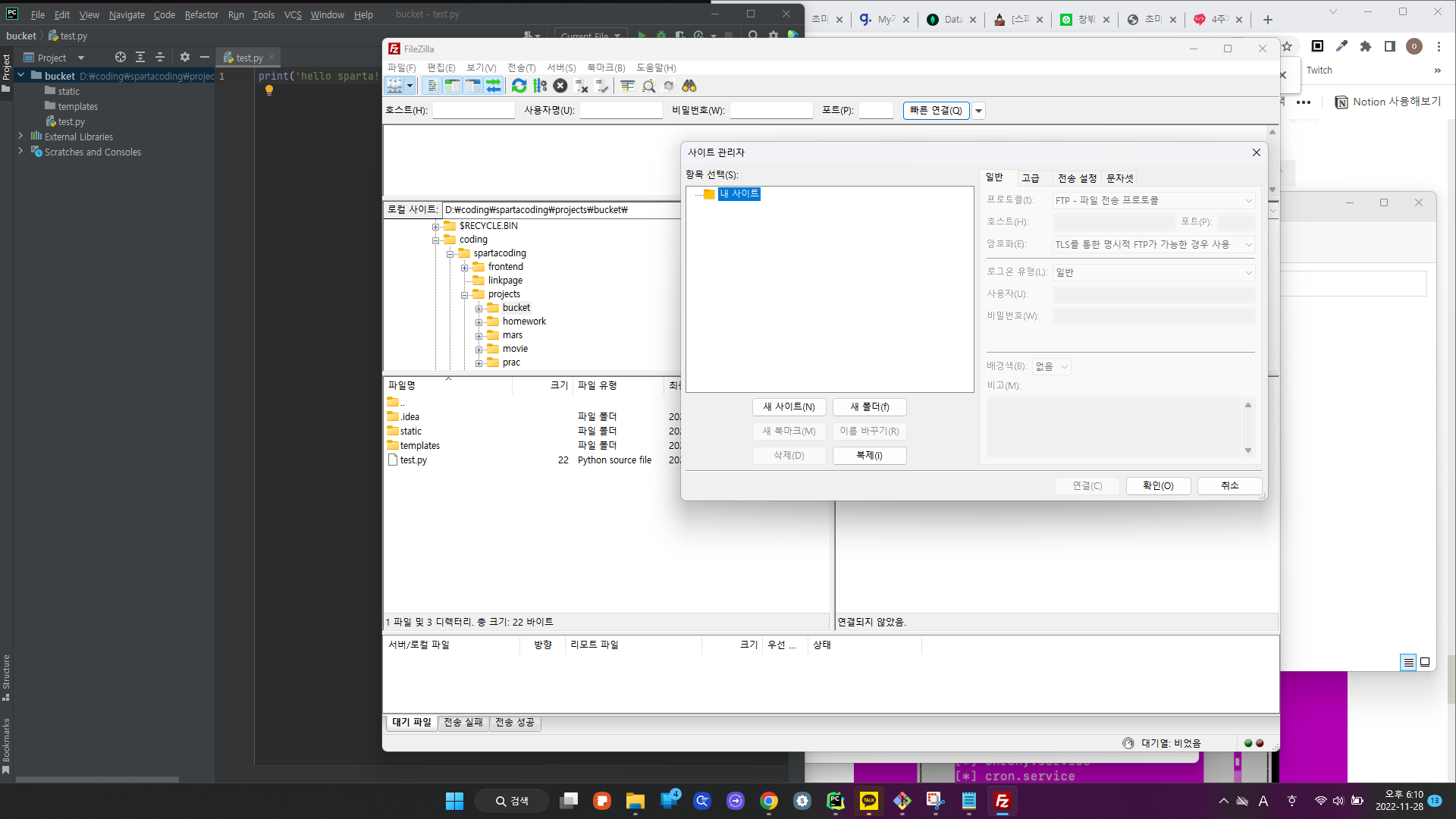 왼쪽 상단 '파일' 밑에잇는 버튼을 클릭하면 사이트 관리자가 뜸